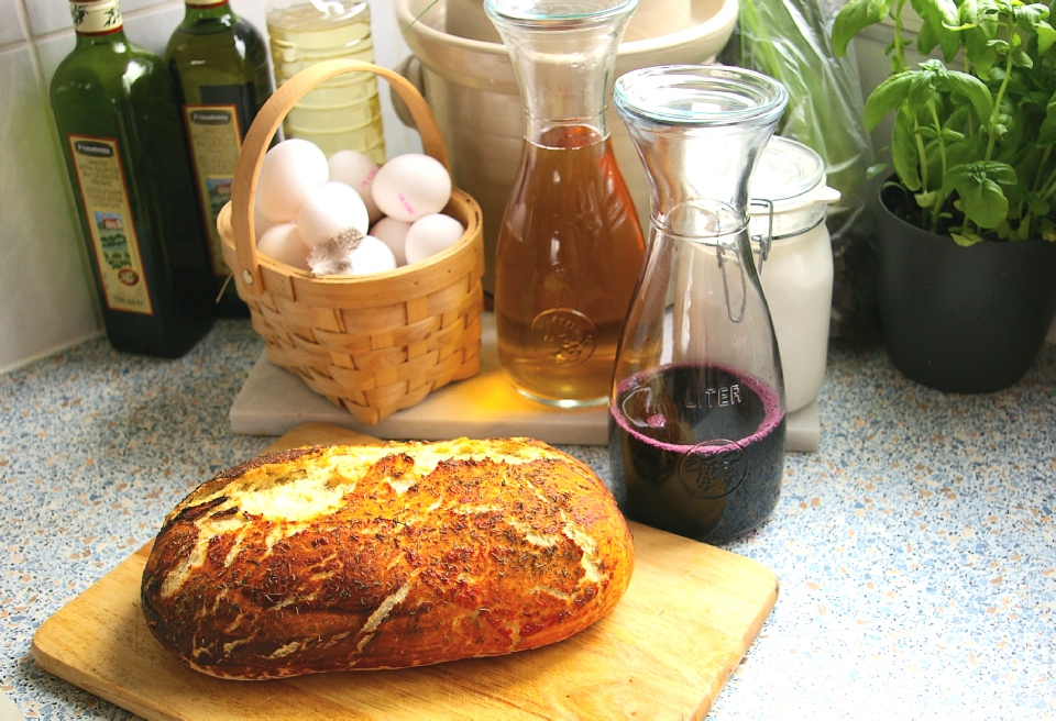 Na het bakken de bovenkant insmeren met olijfolie en af laten koelen.